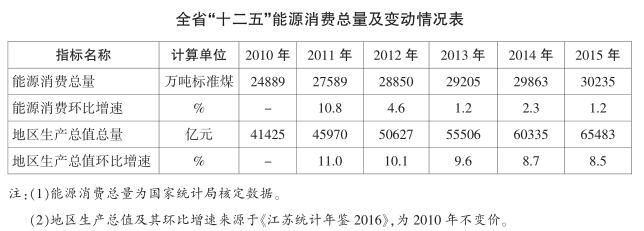 1.能源供給保障有力。開源節流並重,推進能源發展,全麵提升保障能力。2015年末,省內累計建成各類發電裝機9529萬千瓦,形成“六縱五橫”500千伏主網架和25個220千伏分區網架,投運主幹1800公裏和支幹560公裏輸氣管道。2015年,實現5115億千瓦時電力、165億立方米天然氣和2076萬噸成品油供應規模。2015年,能源消費總量30235萬噸標準煤,“十二五”年均增長3.97%。以較低的能源消費,支撐了9.6%的經濟增長和社會發展。