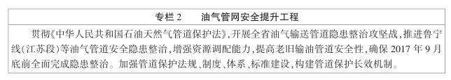 2.石油輸儲體係。加快優化蘇中蘇北特別是沿海地區管道布局,全麵推進互聯互通,持續加大隱患整治力度,實現安全運維水平、管道輸送比例、應急儲備能力同步提升。