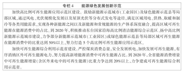 3.優化能源結構,推動能源行業減排。本規劃把綠色低碳轉型發展作為重大任務,從能源生產和消費兩個角度明確了結構優化目標要求。提出安全發展核電、加快發展風電、科學利用太陽能、擴大利用生物質能,力促一次能源生產“一升一降”,即省內非化石能源占比由39.7%提升到72.9%,煤炭產量由1919萬噸降低到700萬噸左右;提出聚焦天然氣和電能替代,力促一次能源消費“三增三減”,即天然氣利用由165億立方米增加到350億立方米,省內可再生能源由607萬噸標準煤增加到1200萬噸標準煤,區外來電淨受電量由649億千瓦時增加到1590億千瓦時,省內工業用煤、供熱用煤和省外購入焦炭逐步減少。