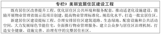 提高住房宜居水平。統籌住房發展的經濟功能和民生功能,構建多層次住房供應保障體係。合理規劃設計城市住區,加強與城市功能板塊協同聯動,促進居民便捷出行和便利生活,建設美麗宜居住區。堅持住房建設質量導向,實施建築裝修一體化、住宅部品標準化、運行維護智能化的成品住房開發模式。踐行美好環境與幸福生活共同締造理念,加快住宅小區物業服務管理全覆蓋,實現物業服務與社區治理、居民自治的良性互動。引導專業化機構化租賃企業規範發展,盤活存量房源和閑置用房發展長期租賃住房,擴大優質穩定住房供給。堅持“房子是用來住的、不是用來炒的”定位,穩妥實施“一城一策”,加強房地產金融審慎管理,促進房地產市場平穩健康發展。改革完善住房公積金製度。