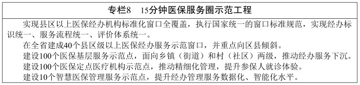 ——醫保服務優質便捷。醫保公共服務網絡實現省、市、縣、鄉鎮(街道)、村(社區)全覆蓋,15分鍾醫保便民服務圈基本建成,一體化服務水平顯著提高,醫保政務服務事項線上、窗口可辦率均達100%,人民群眾就近享受便捷高效醫保服務。