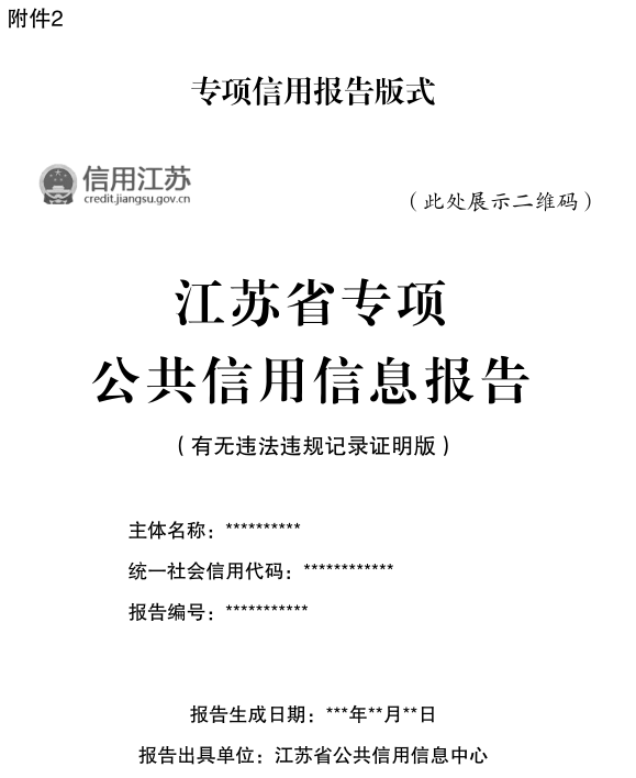 (二)上線查詢功能。完善省公共信用信息係統,依托“信用关键词1”網站開發專項信用報告服務專欄,為經營主體提供一鍵查詢、下載、打印及真實性驗證服務。推動在关键词1政務服務網、“蘇服辦”移動端、政務服務中心窗口、綜合政務服務自助終端開通專項信用報告服務功能,公布辦事指南、操作流程,提供線上線下“全覆蓋、全天候”服務。持續做好係統運維保障工作,確保安全穩定、高效運行。