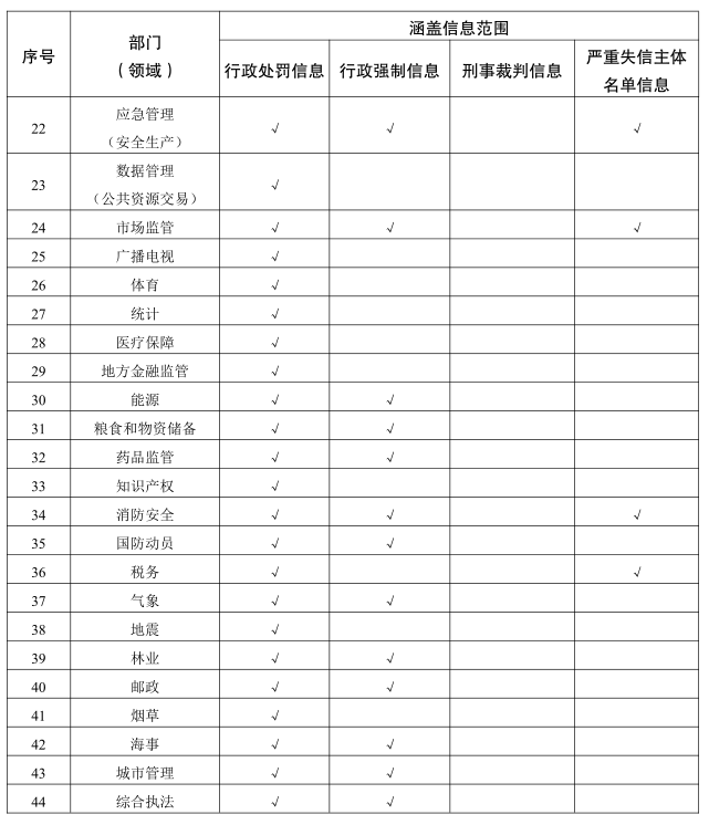 (三)適用領域。首批在全省推行專項信用報告覆蓋44個部門(領域)違法違規信息記錄,經營主體可根據應用需要從中自行選擇替代範圍。按照“應替盡替”原則,視相關部門(領域)數據共享情況,逐步將涉及出具有無違法違規記錄證明的領域全部納入替代範圍,逐步以“信用代證”替代企業上市合法合規信息核查。