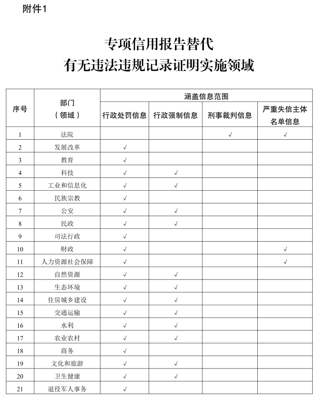附件:1.專項信用報告替代有無違法違規記錄證明實施領域