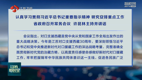 9月4日下午,省政府召開常務會議,認真學習貫徹習近平總書記重要指示精神,深入落實第四次對口支援西藏工作會議部署,審議《促進銀發經濟高質量發展實施方案》,研究安排重點工作。省長許昆林主持會議並講話。查看全文 >