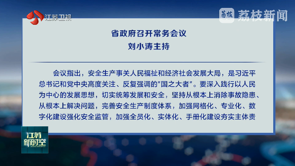 11月7日,省政府召開常務會議,深入學習貫徹黨的二十屆四中全會精神和習近平總書記關於安全生產的重要論述,審議《關於推進安全生產“六化”建設的實施方案》,部署下一階段工作。