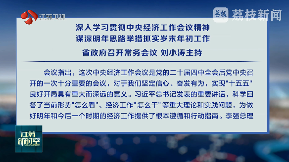 12月16日,省政府召開常務會議,深入學習貫徹習近平總書記重要講話和中央經濟工作會議精神,認真落實李強總理講話要求,按照省委常委會會議部署,研究安排貫徹落實工作。