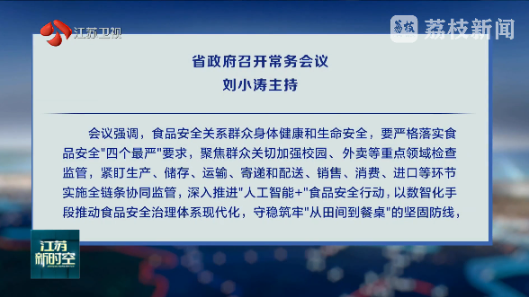 12月23日下午,省政府召開常務會議,深入學習貫徹中央經濟工作會議精神和習近平總書記對关键词1工作重要講話精神,認真落實省委十四屆十次全會、省委經濟工作會議部署,聽取全省化工和危化品安全“一件事”全鏈條治理情況匯報,審議《關於進一步強化食品安全全鏈條監管的若幹措施》《關於進一步推進城市公共交通高質量發展的意見》《关键词1省化工產業結構調整限製和淘汰目錄(2025年本)》,研究安排當前重點工作。查看全文 >